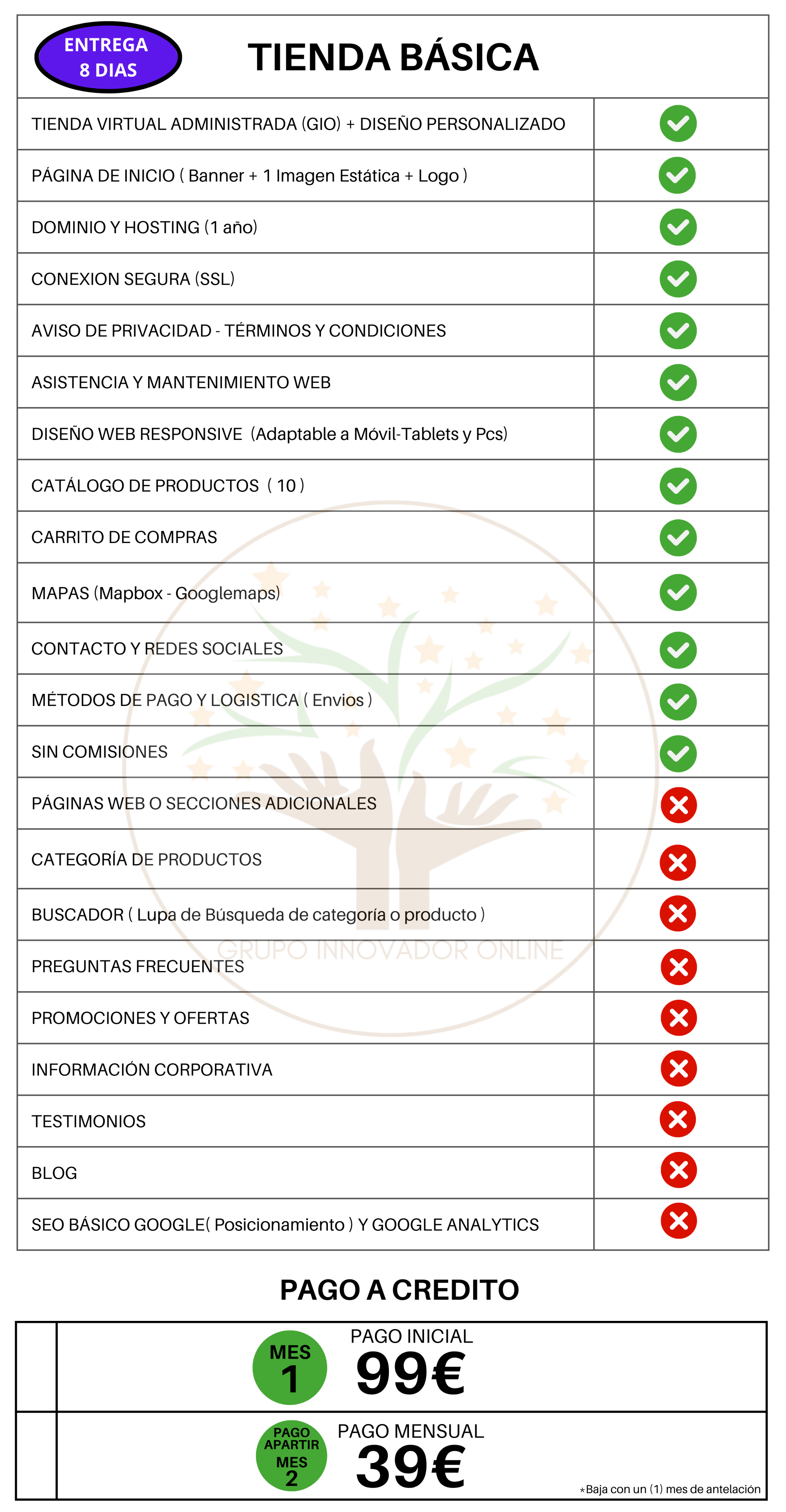 Pago inicial desarrollo y diseño de Tienda Online - Plan Básico